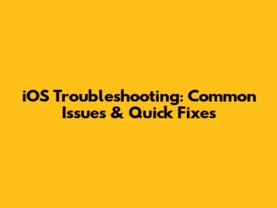 IOS Troubleshooting: Common Issues & Quick Fixes