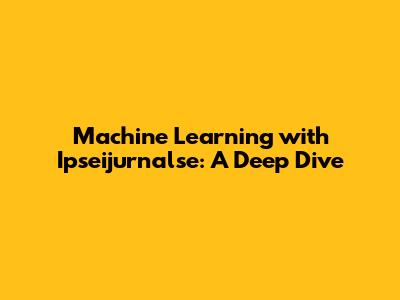 Machine Learning With Ipseijurnalse: A Deep Dive